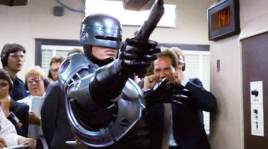 La película aboga por el espectáculo, pero no le hace ascos a un destructivo y cínico sentido del humor (los poco lucidos presentadores de los informativos, los ejecutivos criminales) y a la crítica social (ese juego de mesa llamado "Destrucción nuclear"). Murphy, a pesar de haber perdido aparentemente (sus recuerdos demostraran lo contrario) su condición humana tiene mucho más fondo que la mayoría de las personas que le rodean: el jefe de policía, el ejecutivo corrupto y el malo malísimo Clarence, un auténtico descubrimiento. Un villano repugnante y despiadado de los que hacen época. Esta producción tiene unas secuencias de acción que ya quisieran Michael Bay o el Rob Cohen de turno. Y sus escenas más recordadas como el asesinato de Murphy, la paliza a Clarence o el final en la fábrica industrial siguen cautivando aún hoy. ROBOCOP también significó el principio de la estrecha colaboración entre Verhoeven y el gran Rob Bottin (seguiría en DESAFÍO TOTAL, INSTINTO BÁSICO y STARSHIP TROOPERS), que ideó el esqueleto metálico del protagonista, el brutal asesinato de éste o la descomposición de uno de los villanos por su contanto con sustancias químicas corrosivas. Mención para la aparición de Ray Wise, visto recientemente en BUENAS NOCHES, Y BUENA SUERTE. Verhoeven, en su mejor época fue capaz de redefinir los conceptos de la ciencia ficción y esta película lo demuestra.