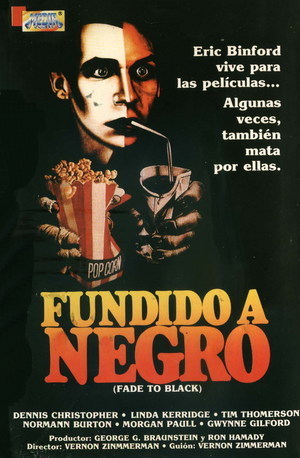 Si Don Quijote se volvía loco después de leer tantas novelas de caballerías, a Eric Binford le pasa lo mismo por ver películas. El problema es que en su locura recrea sus escenas favoritas asesinando a aquellos que le caen mal. "Fundido a negro" es una peli interesante para cualquier cinéfilo y me pareció muy curiosa cuando la vi hace muchos años. Podría haber sido de culto pero se hace demasiado lenta y el director/guionista no sabe aprovecharse de sus premisas. La trama se centra en el protagonista (buena actuación de Dennis Christopher) y en su obsesión por el cine, el freakismo cinéfilo llevado al extremo, que le lleva, aparte de a matar, a enamorarse de una chica de gran parecido a Marilyn Monroe pensando que es la real. El resto de personajes son bastante básicos y poco dibujados. Lo mejor son los guiños y homenajes a películas y actores clásicos como "La noche de los muertos vivientes", "La criatura de la laguna negra", "Psicosis", "Drácula", "La momia", Richard Widmark en "Kiss of Death", Marilyn Monroe o el James Cagney de "Al rojo vivo" (de hecho, el protagonista se rebautiza como Cody Jarret, el nombre de Cagney en este clásico). Para acabar, debo formular la pregunta que Eric, en una apuesta, le formula a su compañero de trabajo (un joven y desconocido Mickey Rourke)a ver si vosotros la sabeis: ¿Cual es el nombre completo de Rick (Humprey Bogart) en "Casablanca"?