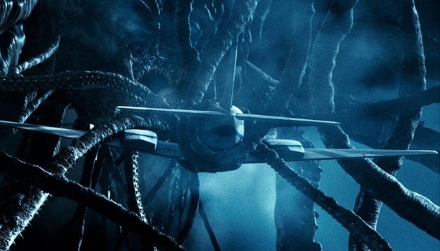 El suspense y la originalidad de la historia es el verdadero sustento de la peli pero cuando esta se empieza a aclarar y tambien vemos un poco mas al monstruo, que no es mas que un pulpo gigante volador, pierde toda su gracia, el bicho evocaba mas con las sombras y las siluetas que con su imagen final.